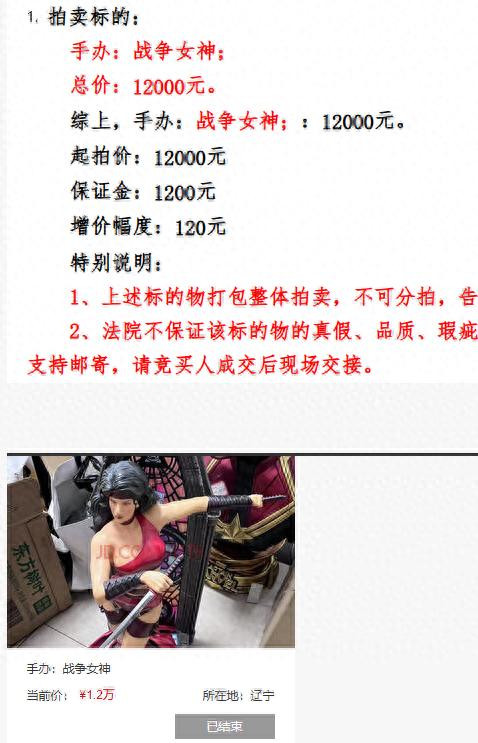 比如去年国内就有法院拍卖了战争女神的手办,被一众网友围观。