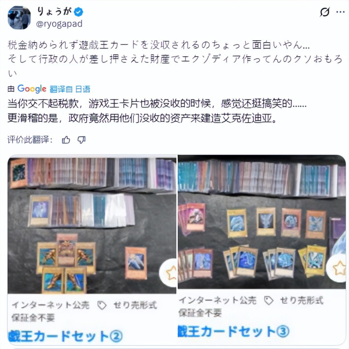 很多人会觉得好笑,“欠税欠到连卡牌和模型都被拍卖”有点荒诞,但说到底,这类官公厅拍卖之所以能拍出高达、艾克佐迪亚,背后还是现实原因,就是有的宅宅是有钱买收藏,就是不愿意好好交税。