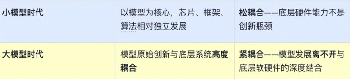 这颠覆了传统认知:过去,大家认为算法创新可以脱离硬件;现在发现没有自主算力,就没有模型创新自主权。